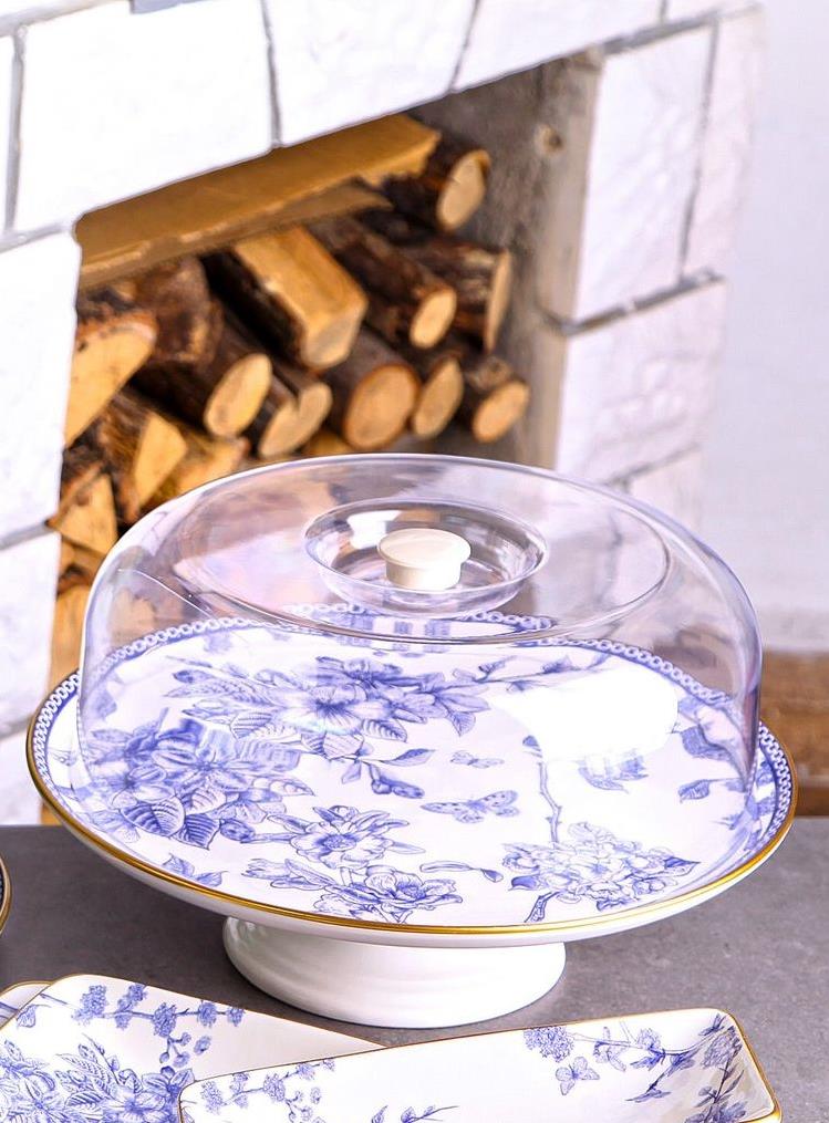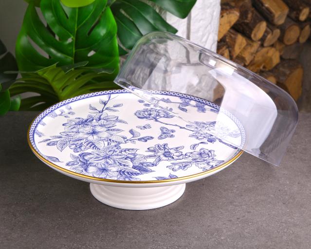 Plastik Kapaklı Seramik Pasta Kek Servis Sunum Tabağı Standı